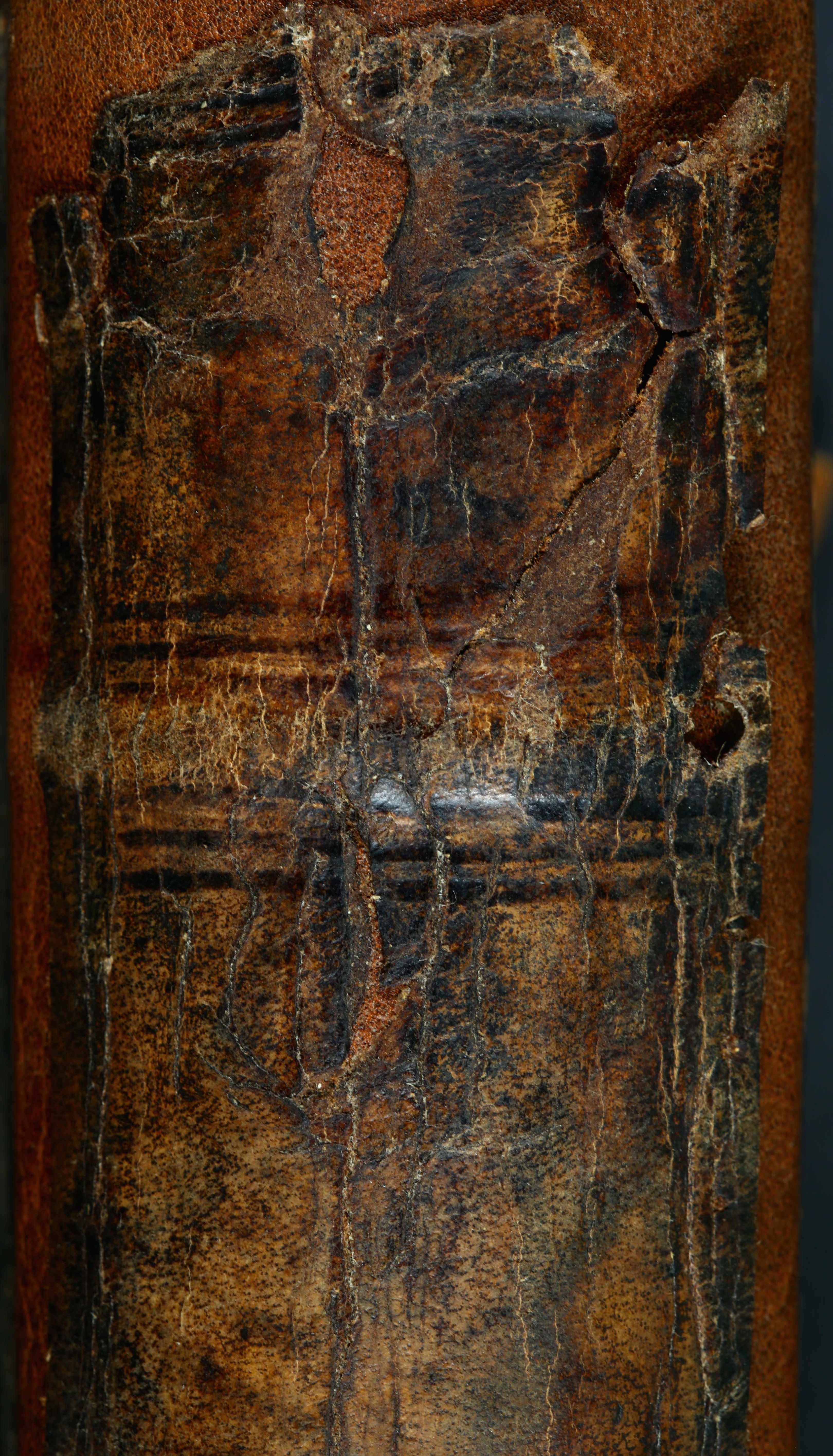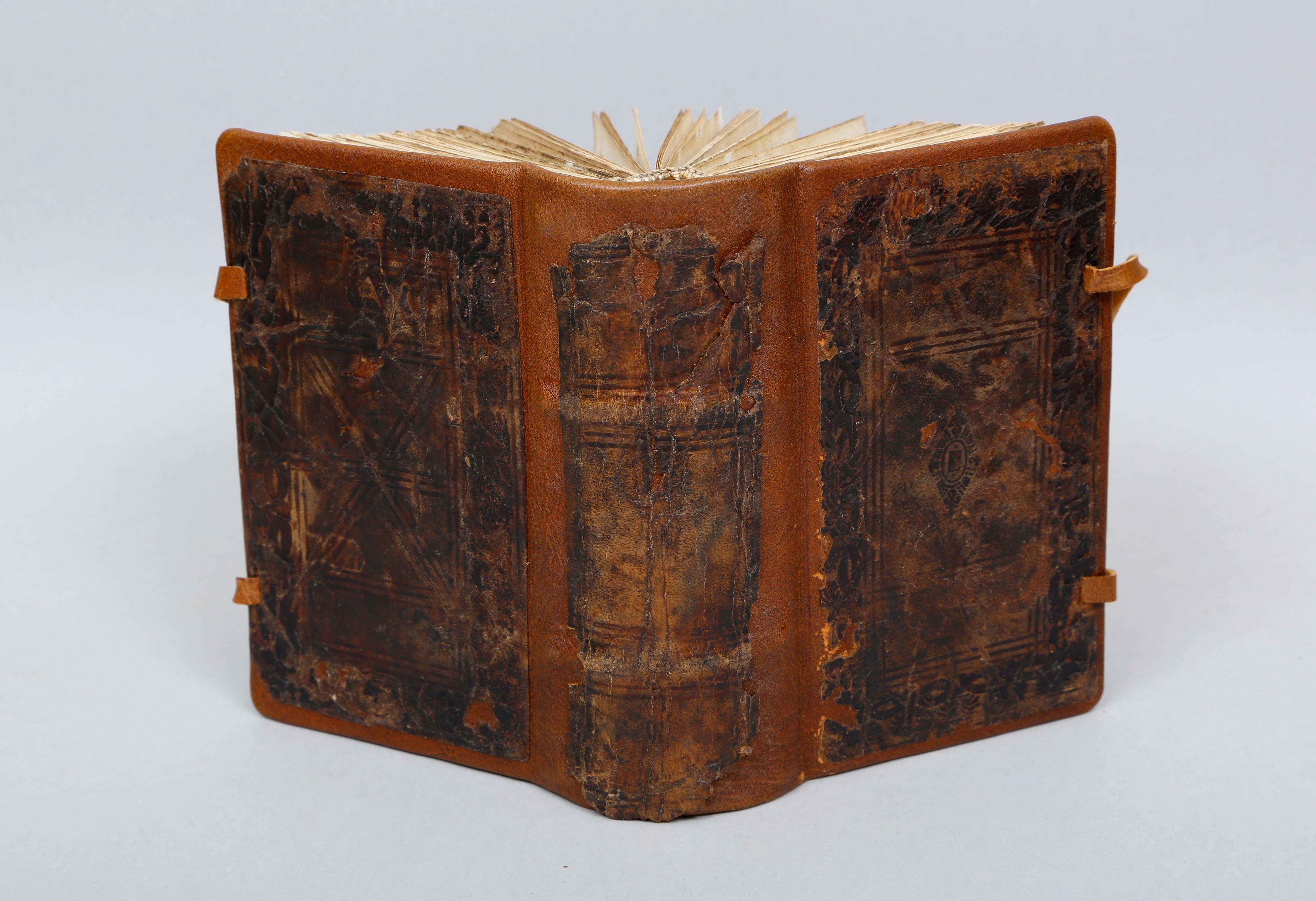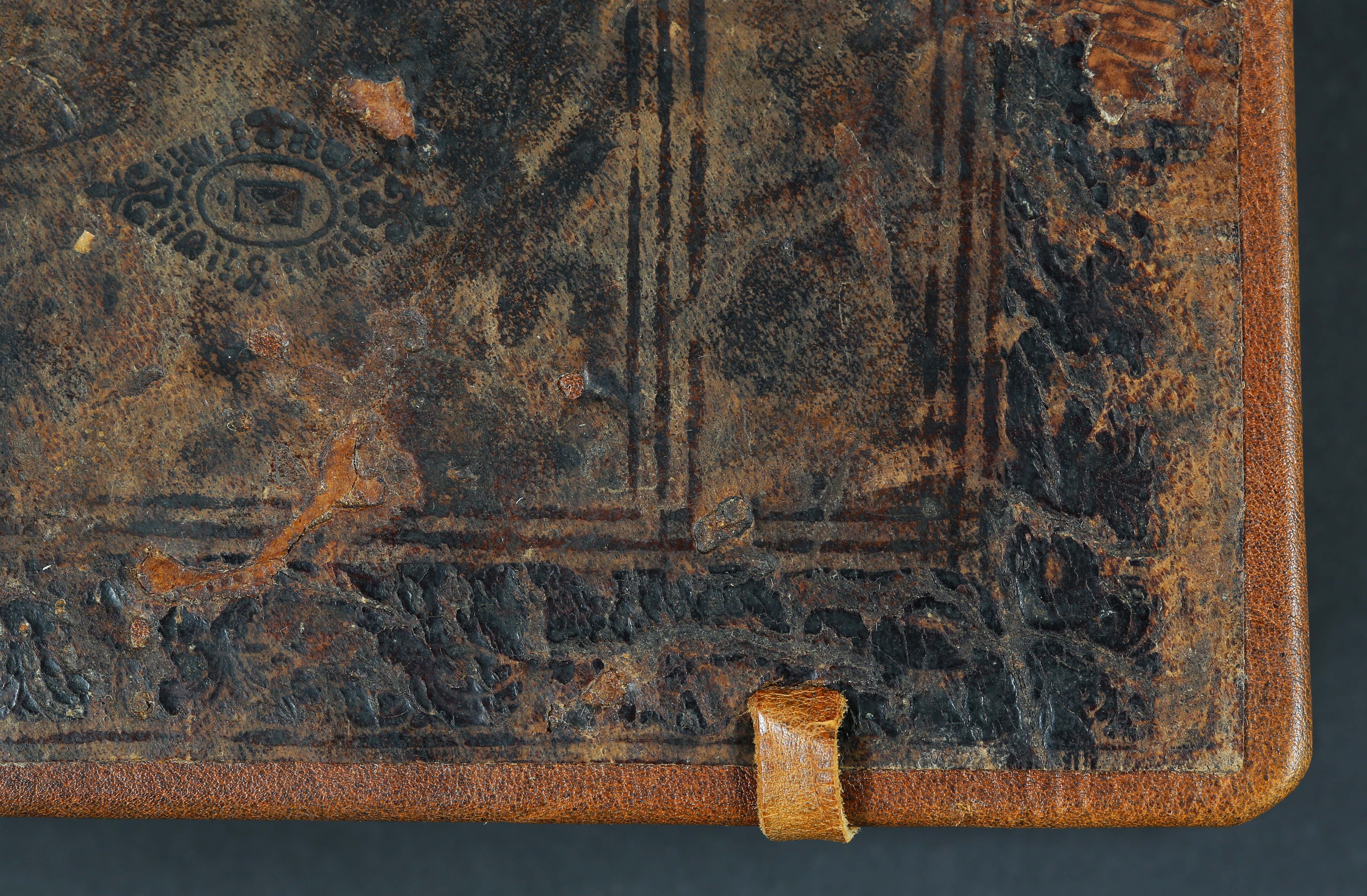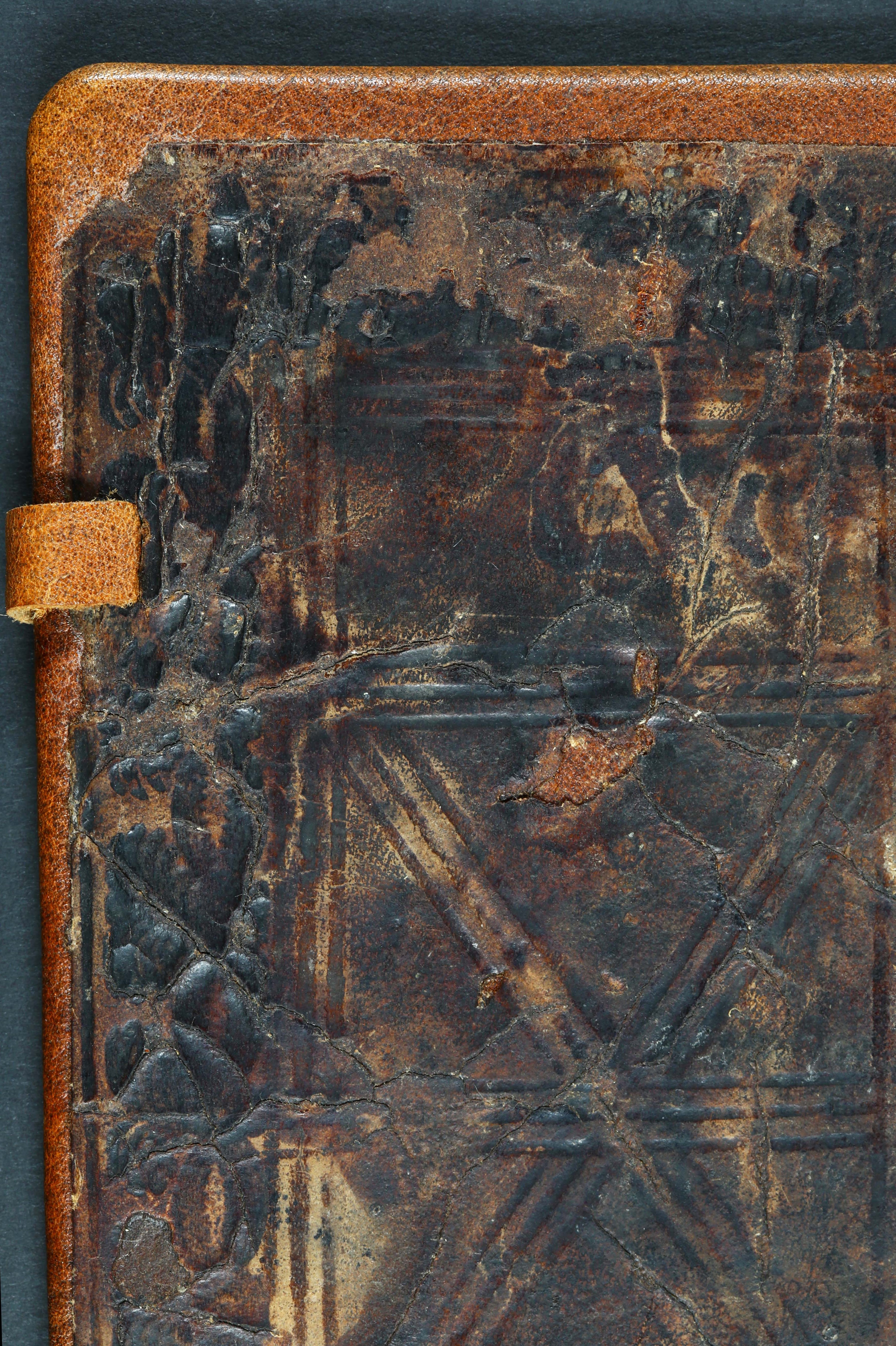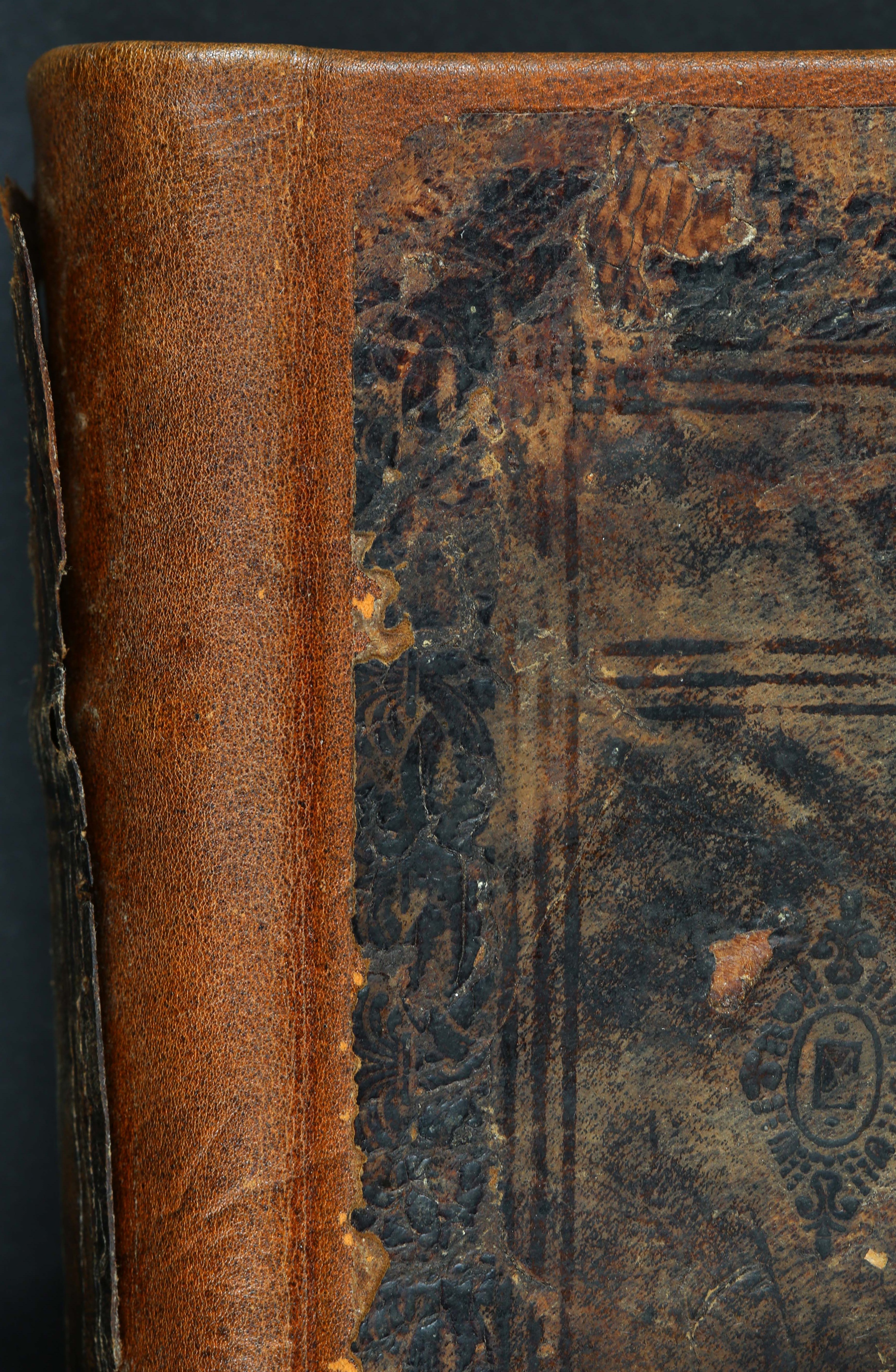 Įrišas: restauruotas; vientisas. Medžiaga: avenos oda. Viršelio dekoras – įvairių įspaudų kompozicija, viršutinėje dalyje – vaizdulys. Viršelis su raišteliais.