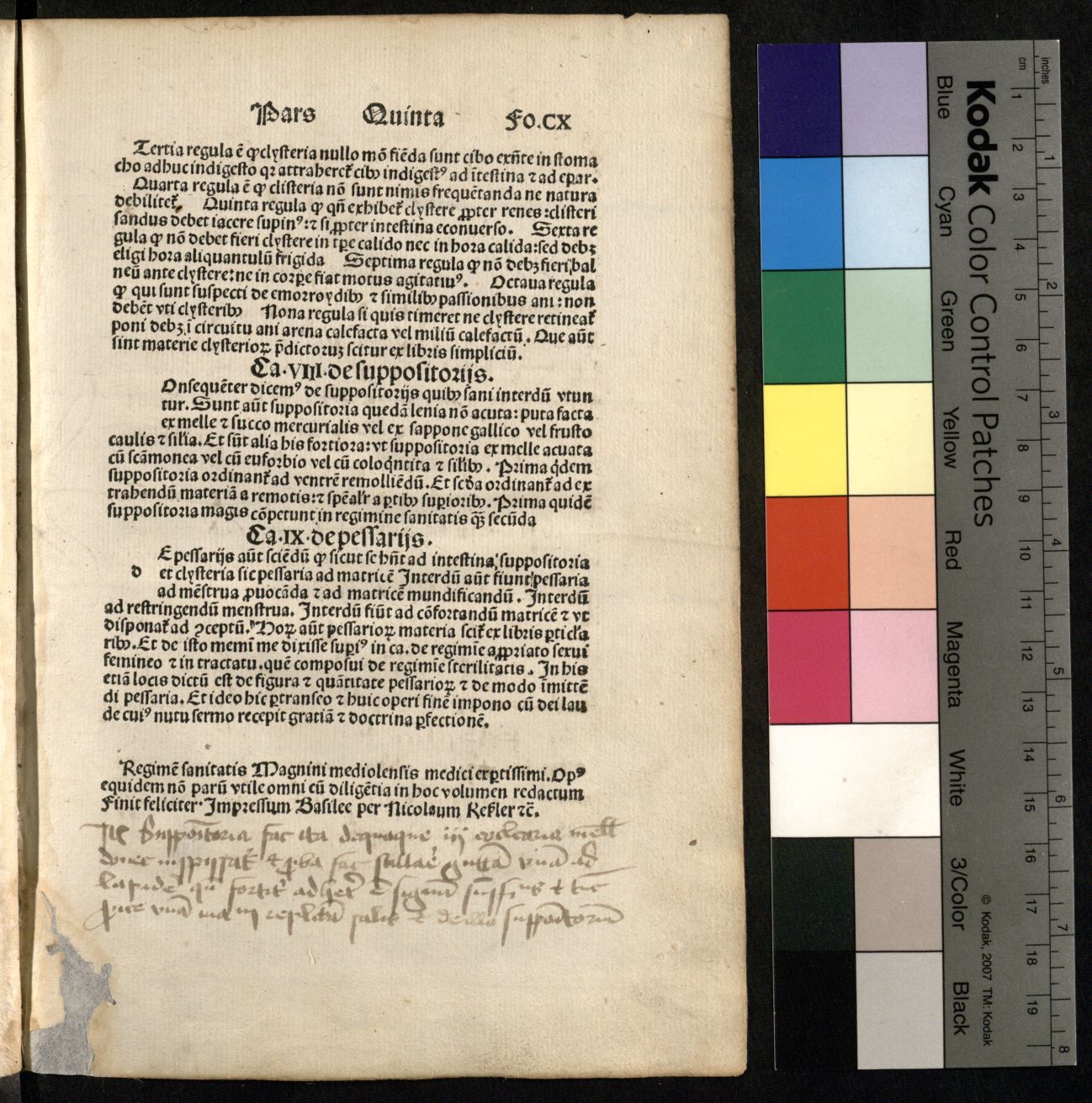 Regimen sanitatis. Basilee [Basel] : per Nicolaum Keßler, [non ante 1493 11 08]. [4], CX [i.e. 90] lap.