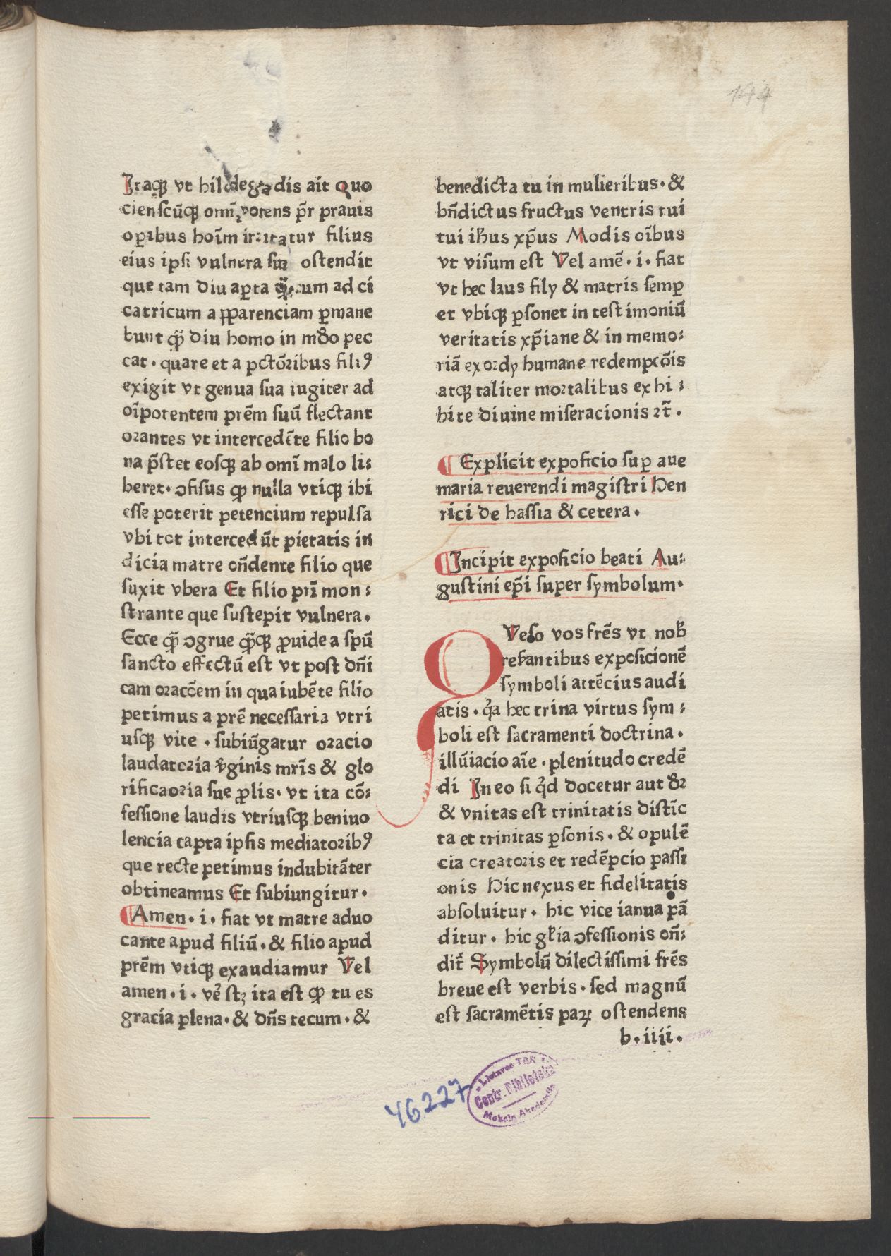 Incipit expositio beati Augustini ep[iscop]i super symbolum