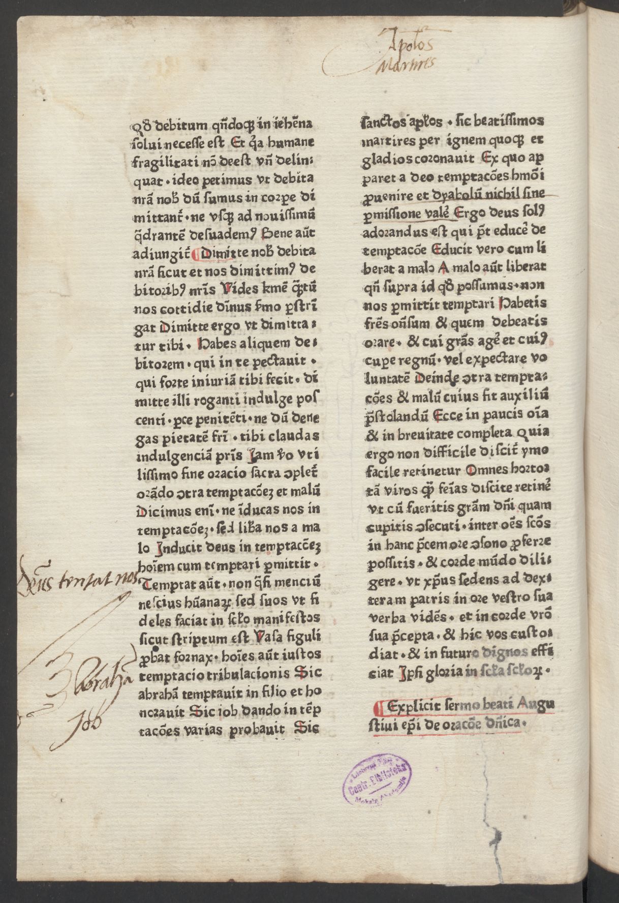 Incipit s[er]mo beati augustini ep[iscop]i super d[omi]nicam orationem