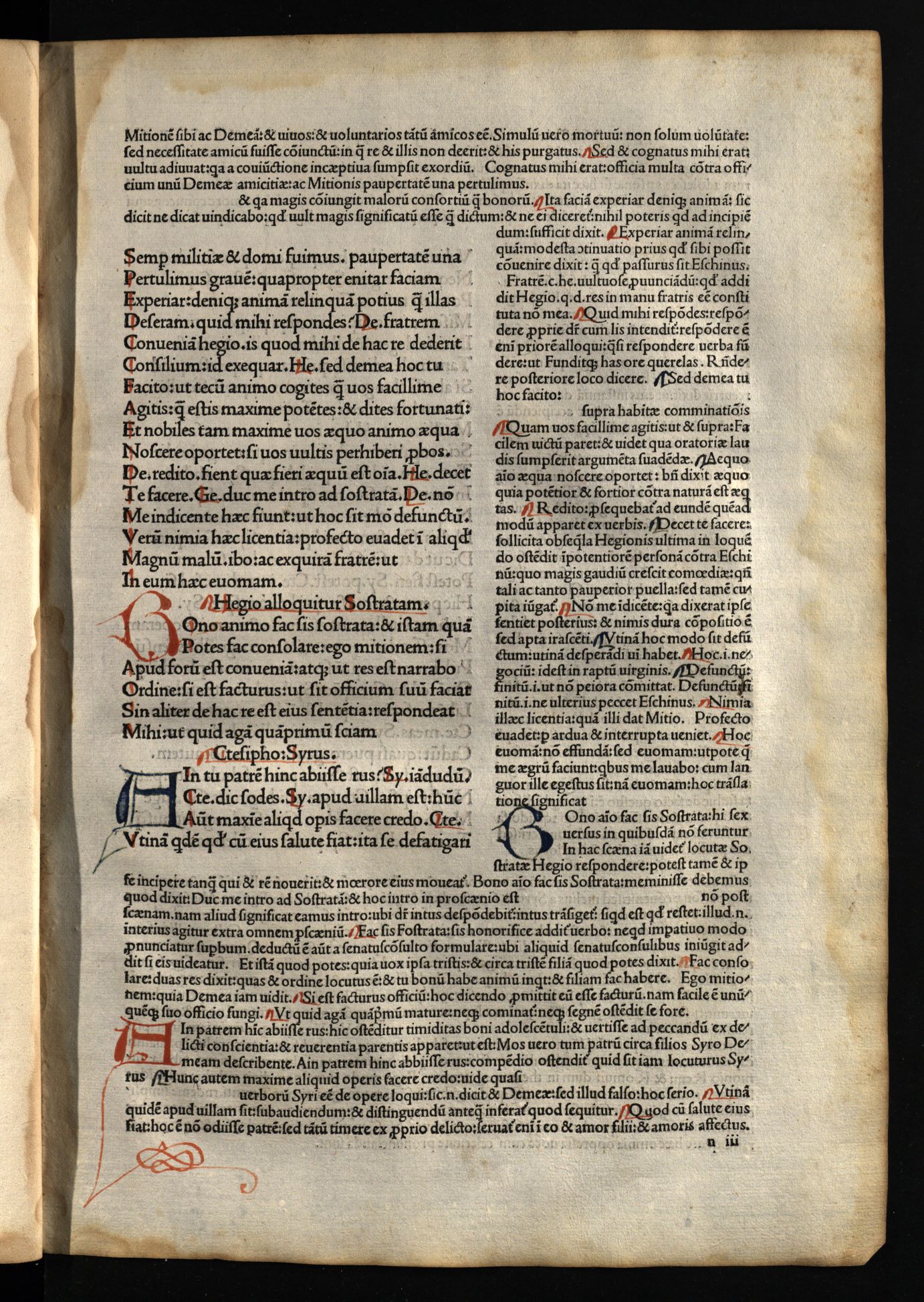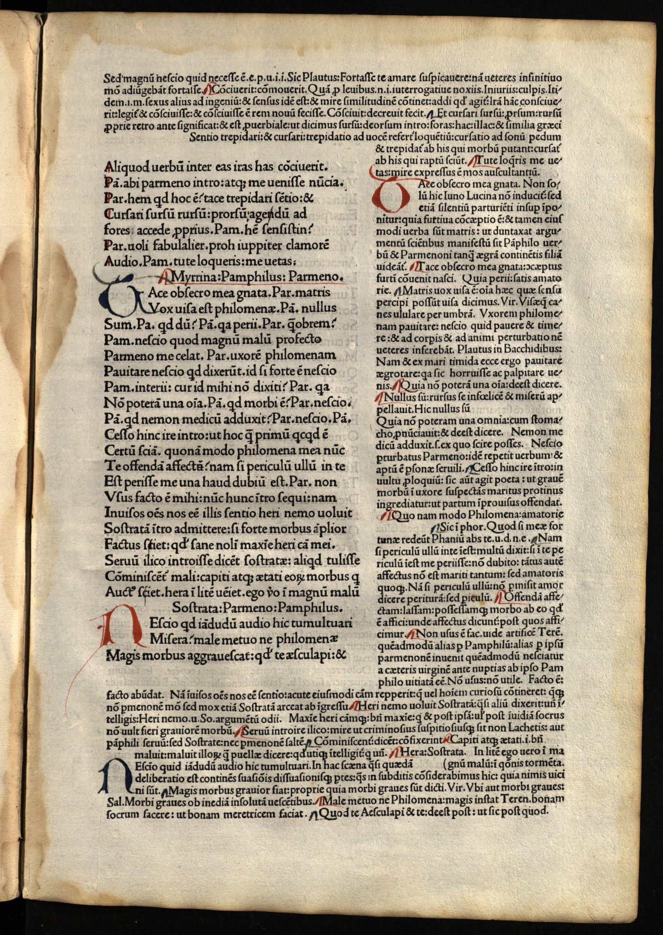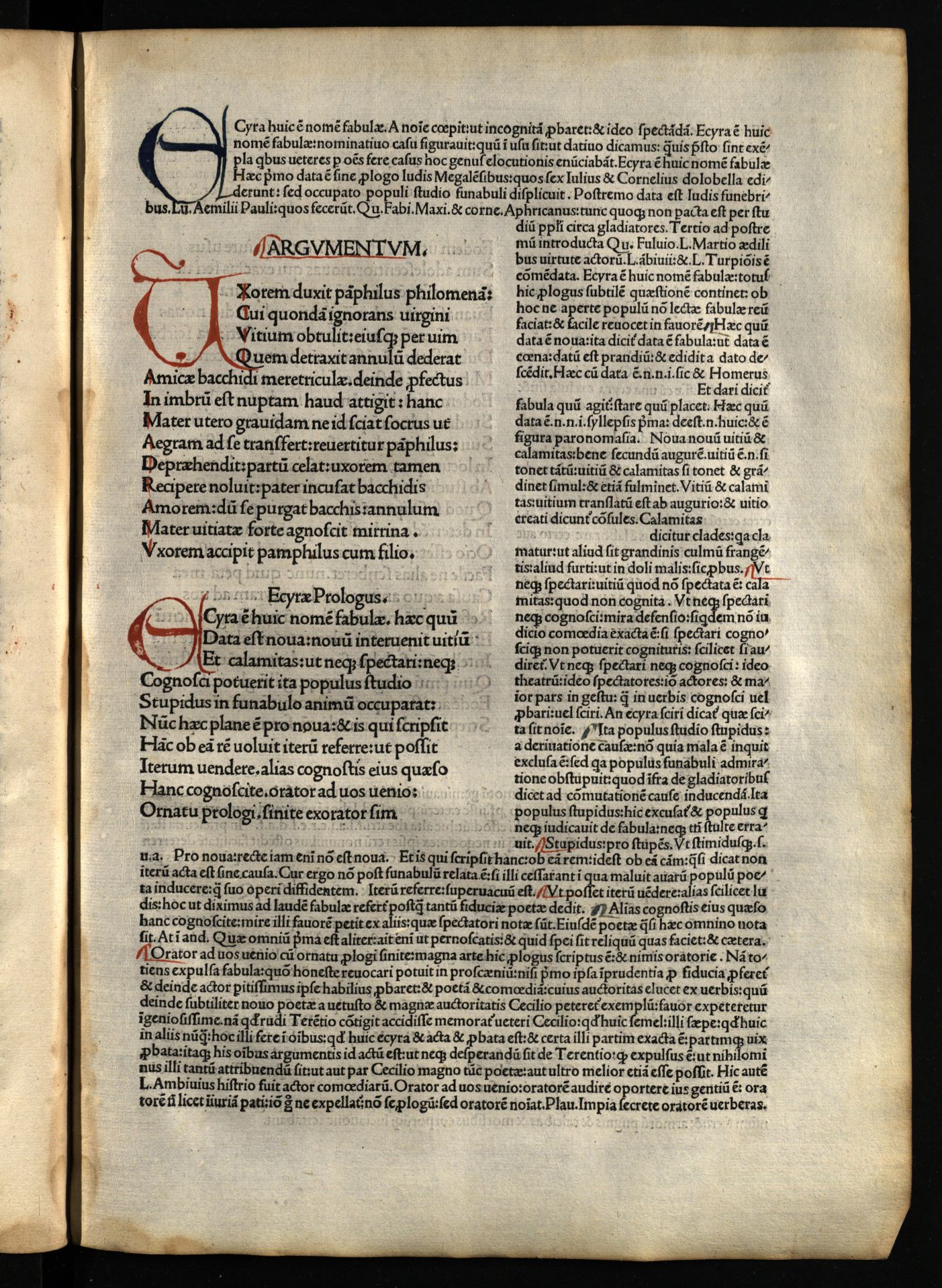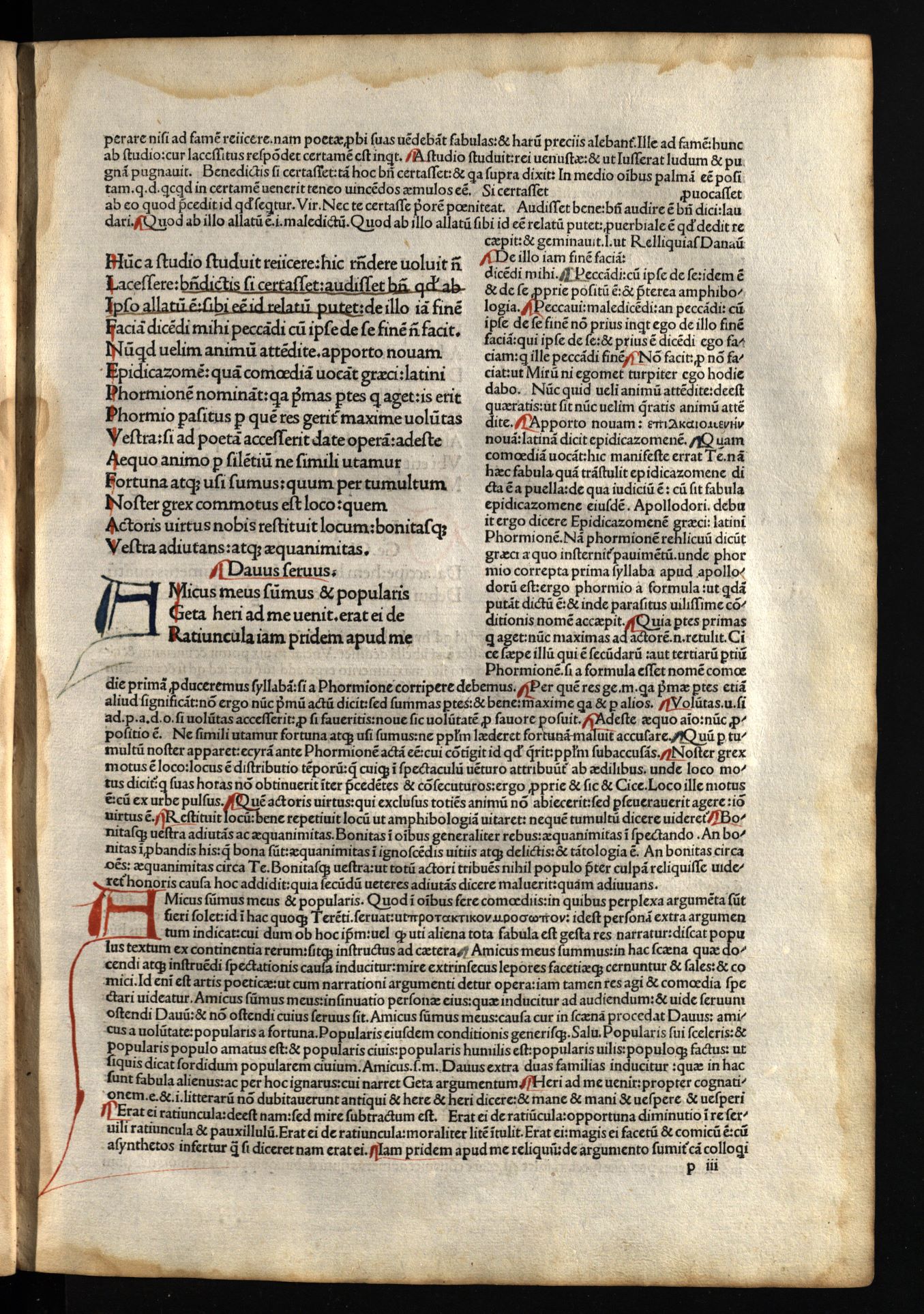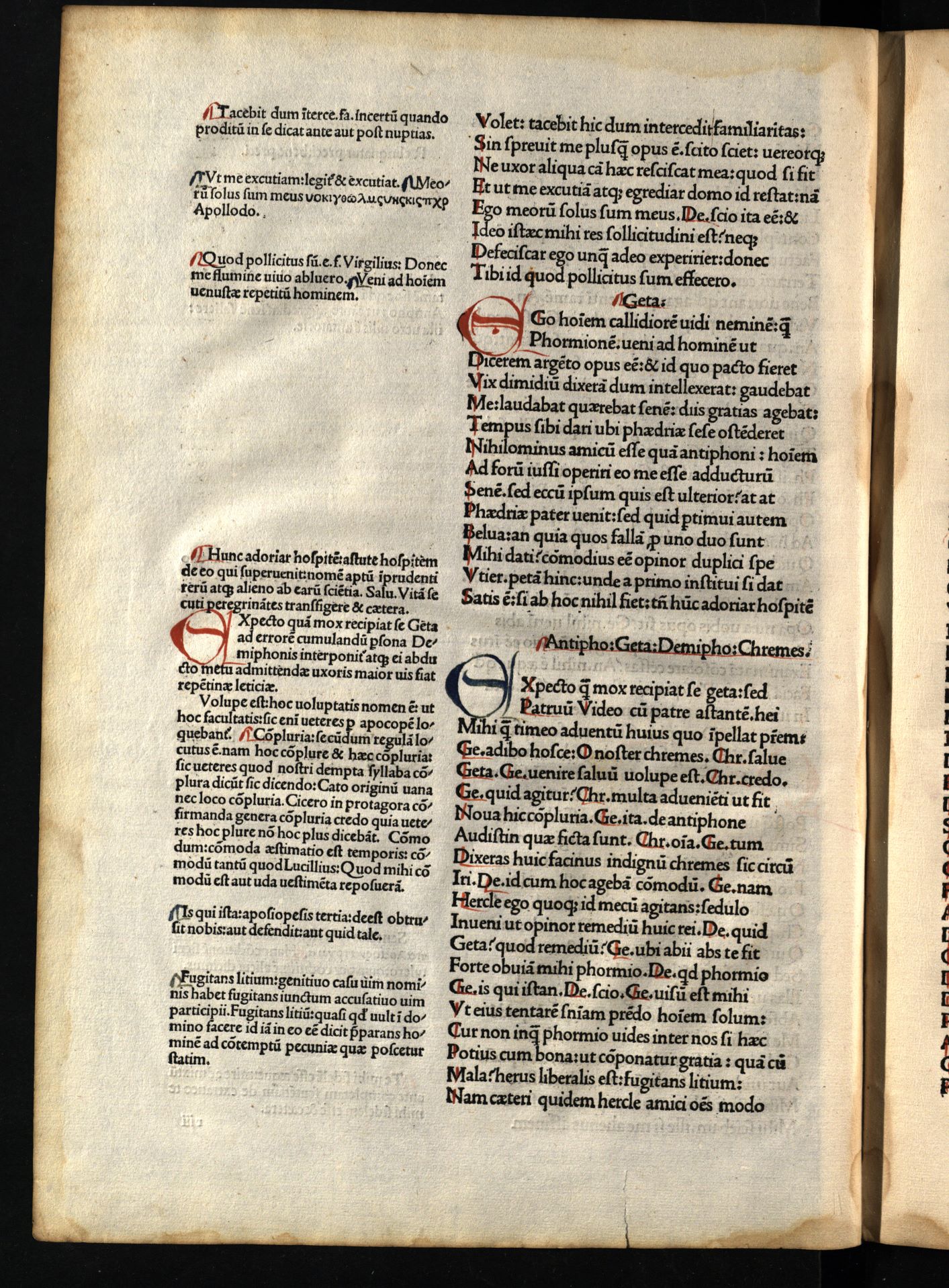 Comoediae / cum commentariis Aelii Donati, Venetiis [i.e. Venezia] : impressa impendio Andreae de Asula Bartholomeiq[ue] de Alexandria, M.CCCC.LXXXIII. pridie Nonas, 1483 12 04, 126 nenumeruoti lapai : inicialai, signetas ; 2° (31 cm).
