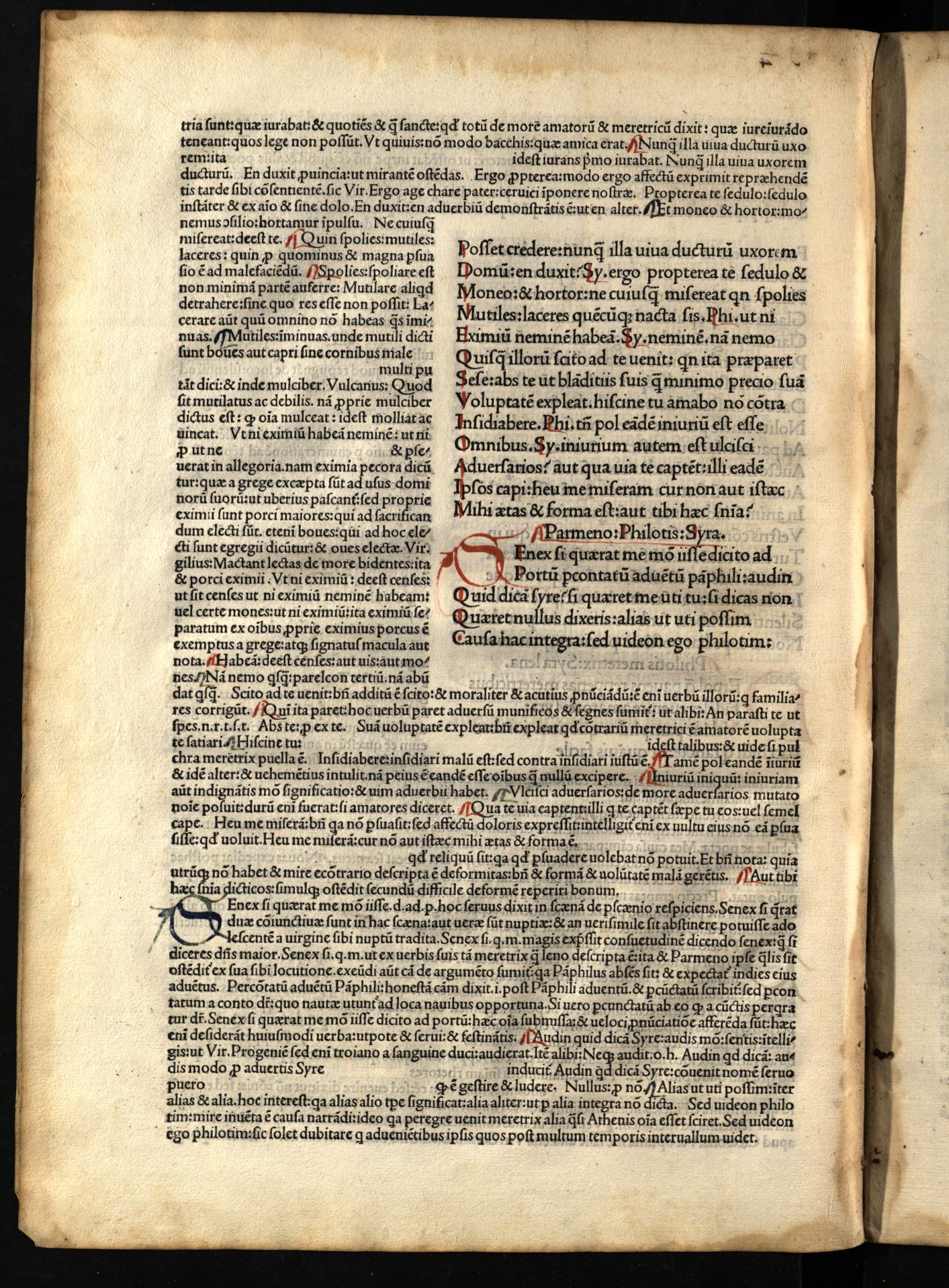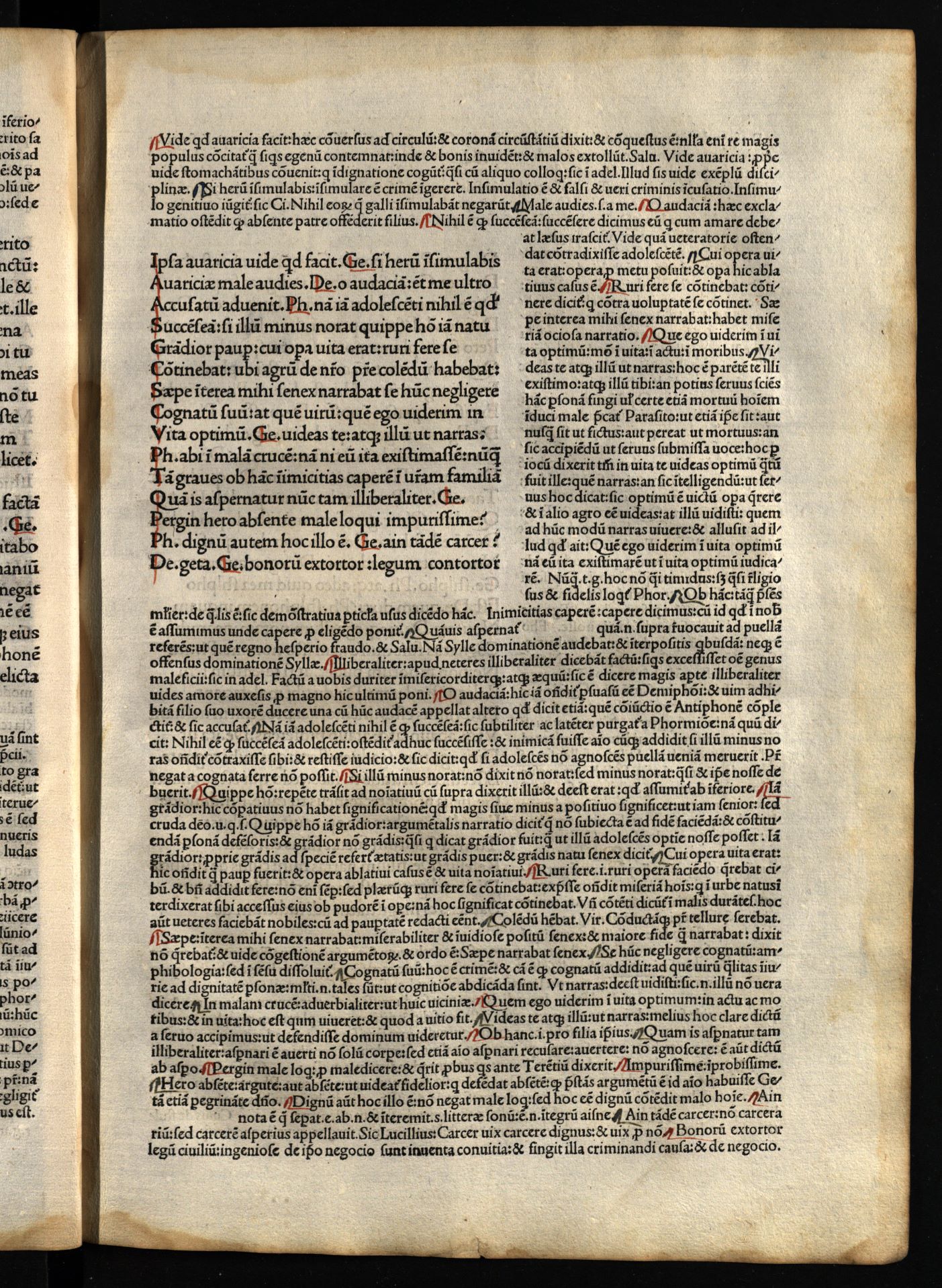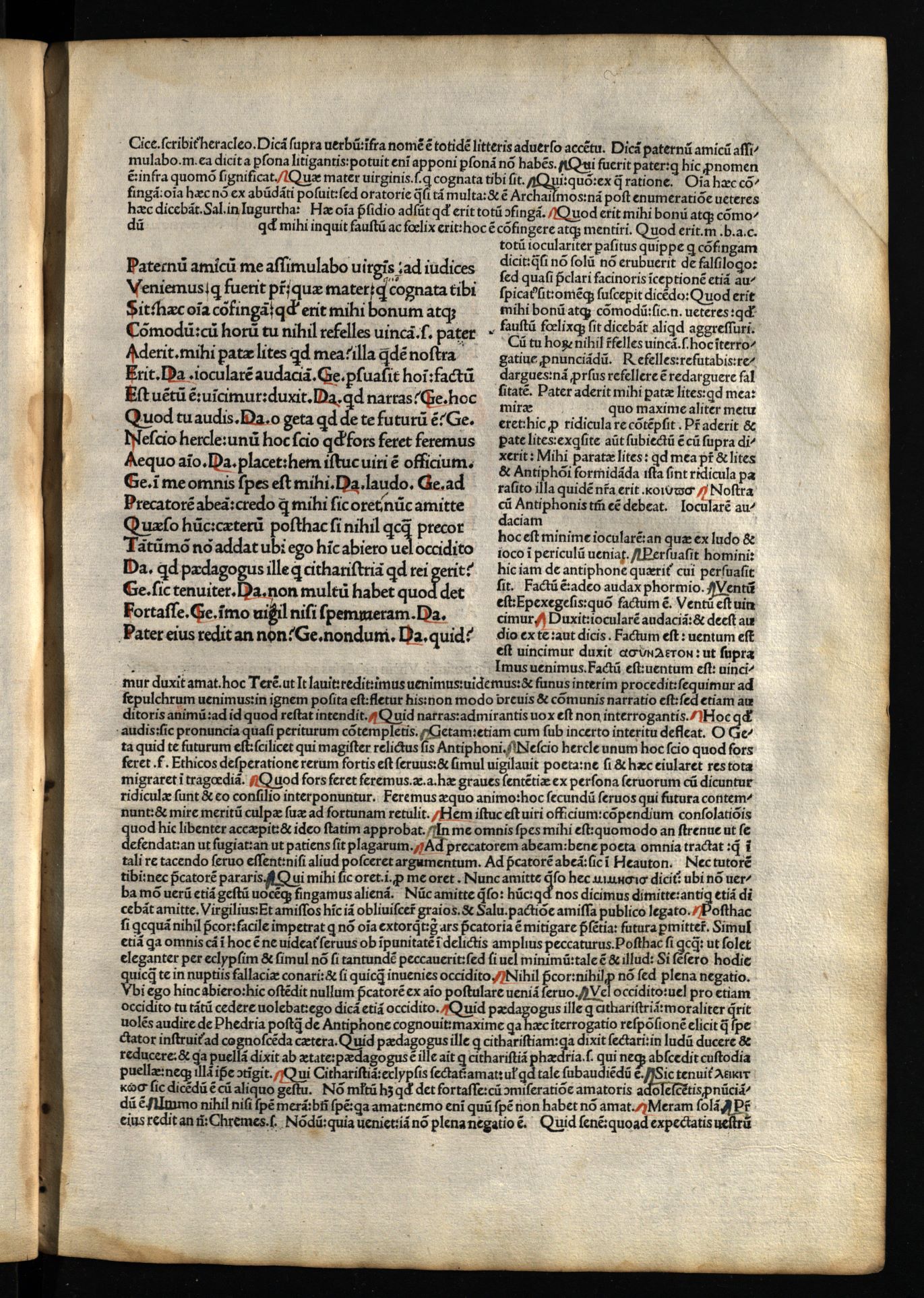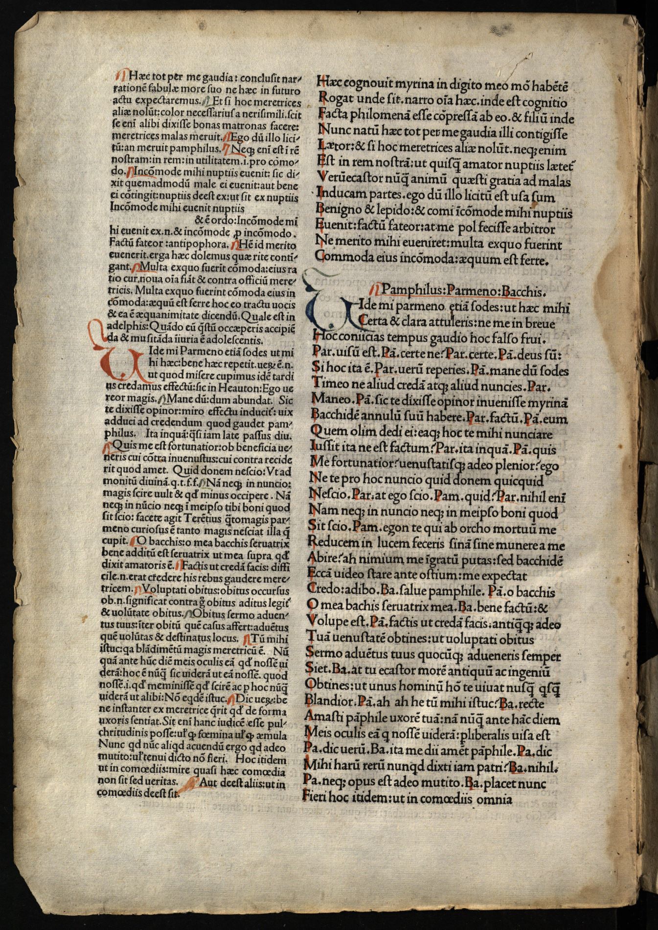 Comoediae / cum commentariis Aelii Donati, Venetiis [i.e. Venezia] : impressa impendio Andreae de Asula Bartholomeiq[ue] de Alexandria, M.CCCC.LXXXIII. pridie Nonas, 1483 12 04, 126 nenumeruoti lapai : inicialai, signetas ; 2° (31 cm).