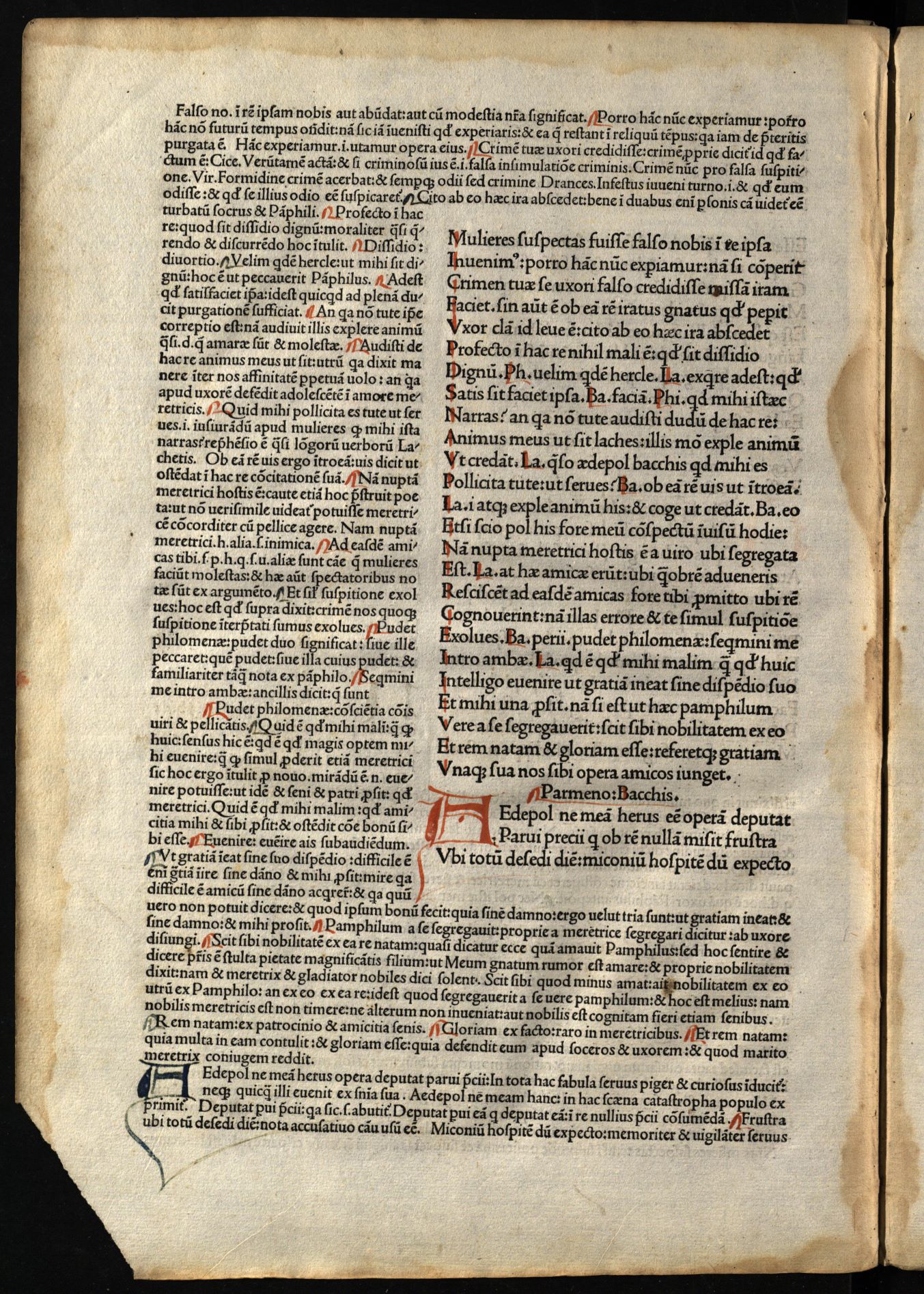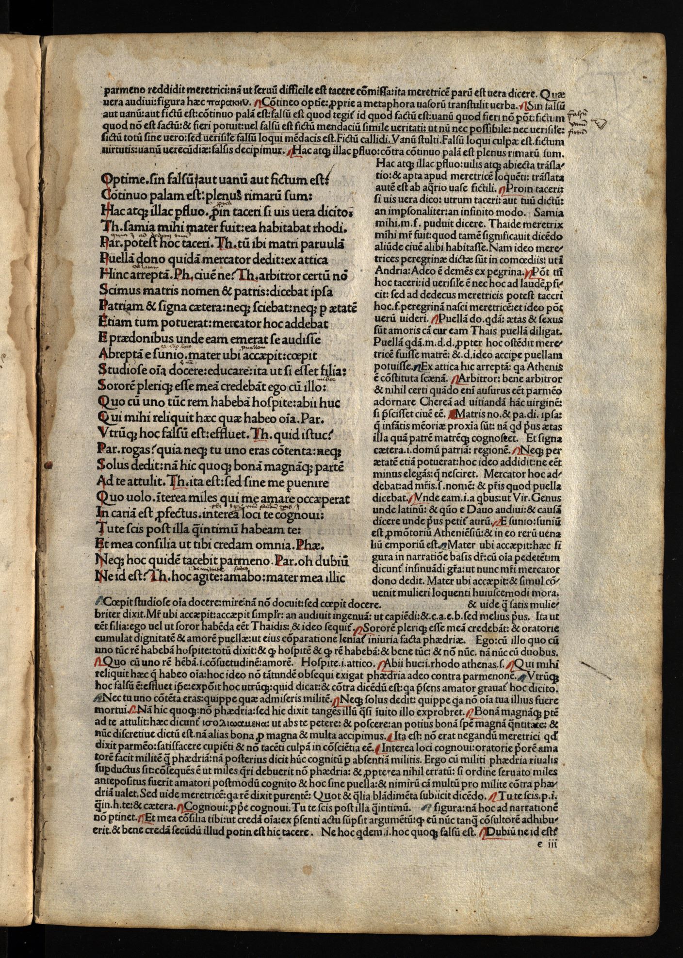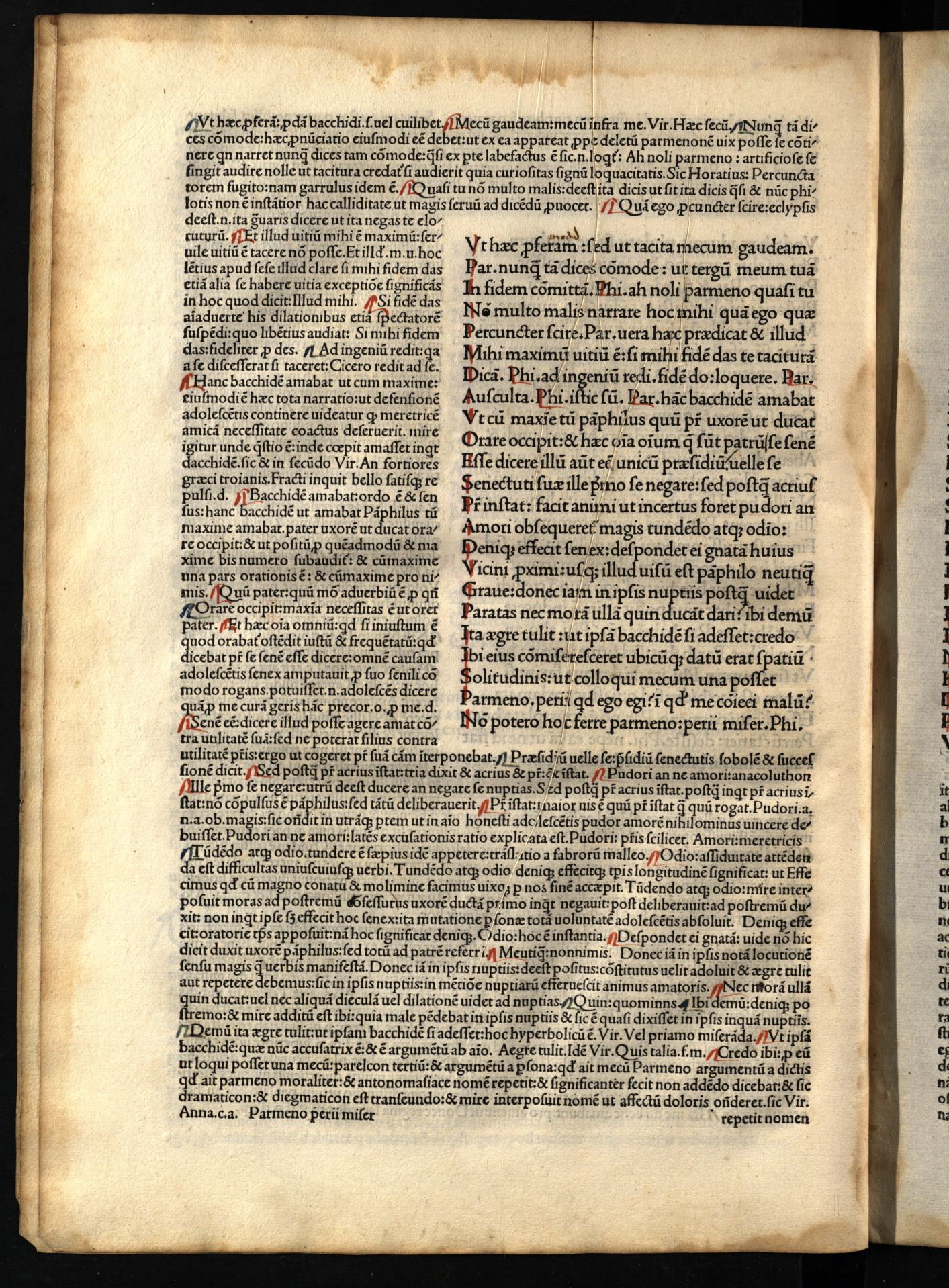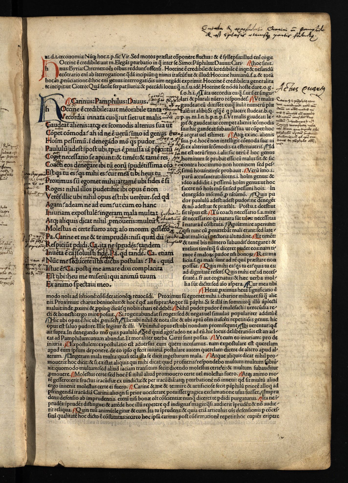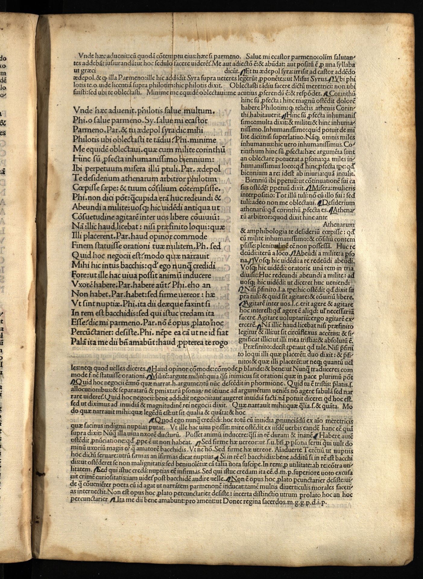 Comoediae / cum commentariis Aelii Donati, Venetiis [i.e. Venezia] : impressa impendio Andreae de Asula Bartholomeiq[ue] de Alexandria, M.CCCC.LXXXIII. pridie Nonas, 1483 12 04, 126 nenumeruoti lapai : inicialai, signetas ; 2° (31 cm).