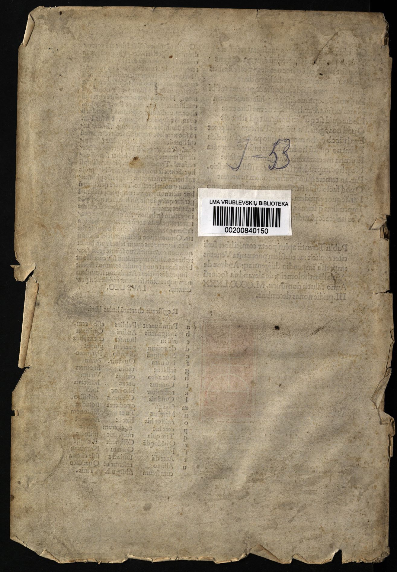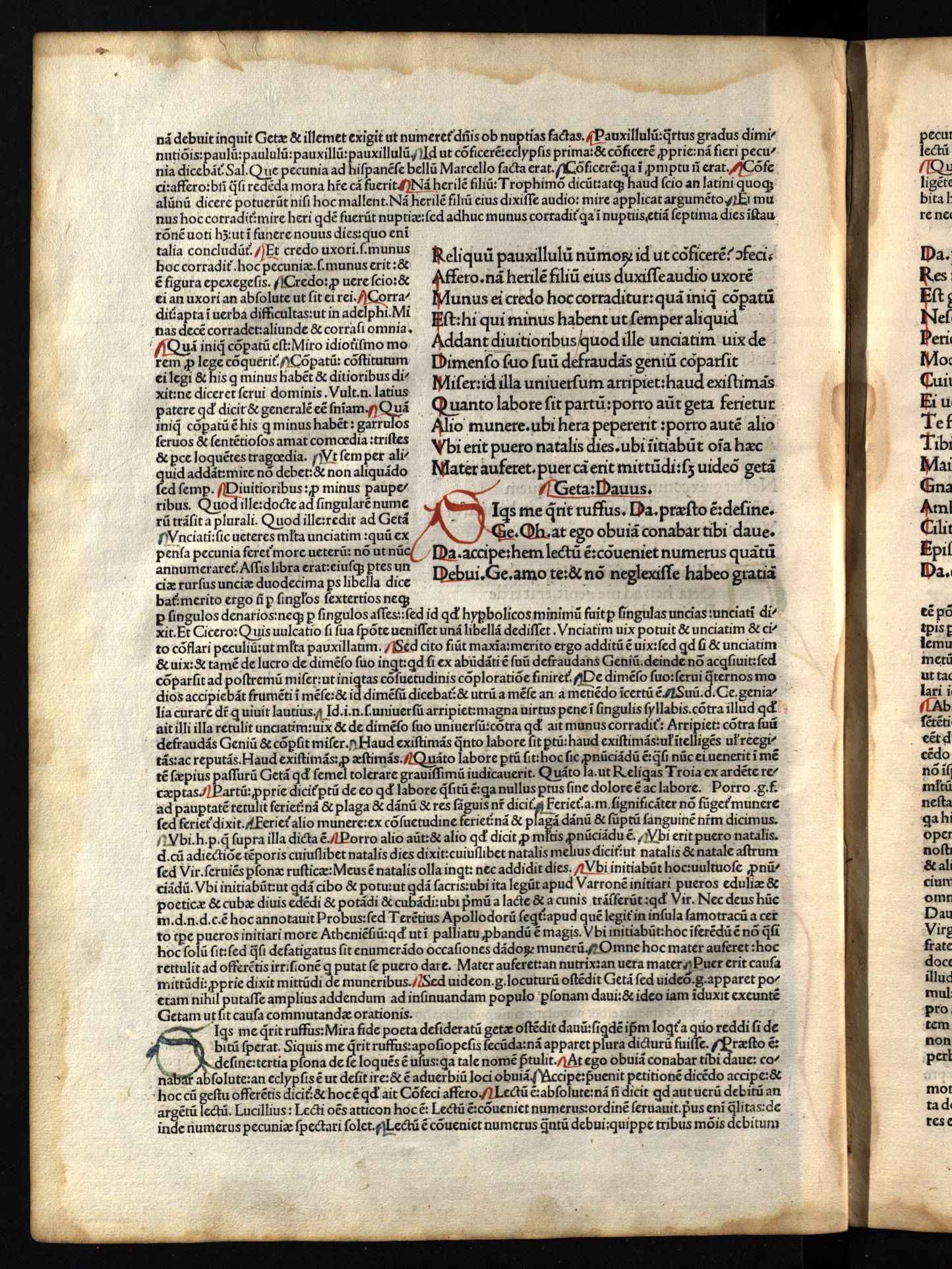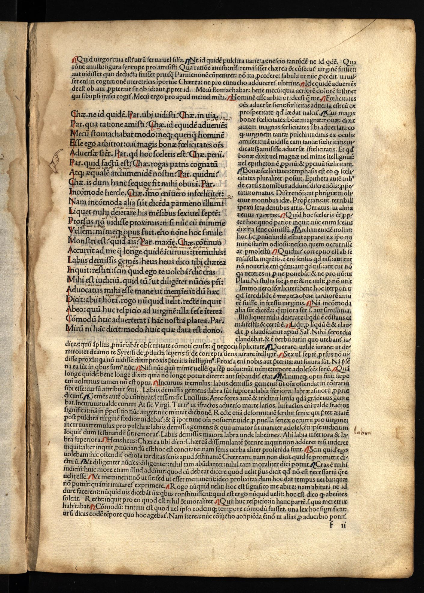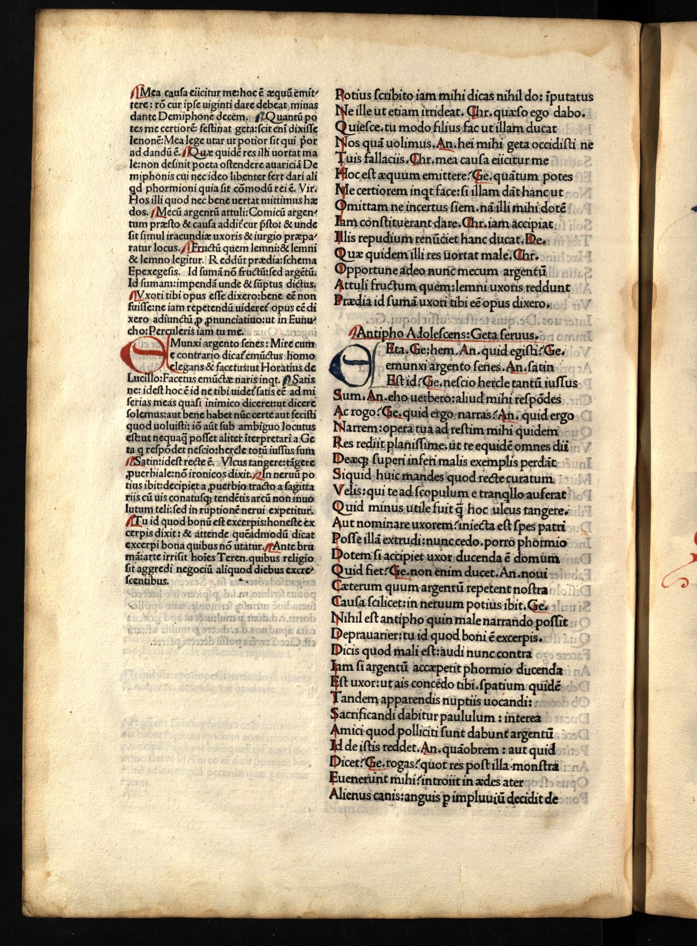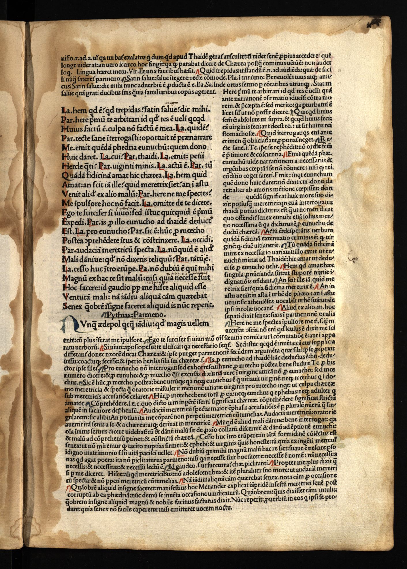 Comoediae / cum commentariis Aelii Donati, Venetiis [i.e. Venezia] : impressa impendio Andreae de Asula Bartholomeiq[ue] de Alexandria, M.CCCC.LXXXIII. pridie Nonas, 1483 12 04, 126 nenumeruoti lapai : inicialai, signetas ; 2° (31 cm).